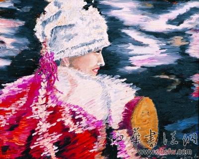 王民平的油畫為新派油畫,“燃燒的冰淇淋”是其油畫作品的主要繪畫語言。他的油畫題材多樣,以荷花、白樺林和少數(shù)民族題材為主;色彩飽滿,以原色的桔紅、大紅、黃色等暖色調(diào)為主;技法獨特,以瀟灑的厚積、流油、刀刮等新創(chuàng)技法為主;構(gòu)圖大膽,以不加處理的畫布和虛實的大膽對比形成時空的空靈感;立意新穎,以不同尋常的思維審美,將很平常的人和物表現(xiàn)得異乎的美。他的代表作《曲杰尼瑪》,藏族小孩衣袖上流淌著的奶油、好似朱古力的高原紅,還有天際上火一樣的霞光,就像被激情融化的冰淇淋,布幅上充滿濃烈的當代油畫氣息。