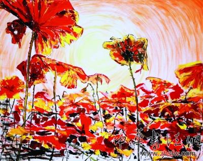 從肉色,向桔紅、朱紅、大紅、生褐、熟褐過渡,然后到黑色,暖暖的,艷艷的,透過各種飽滿的色塊和線條,你能感受美在升華,激情在燃燒。