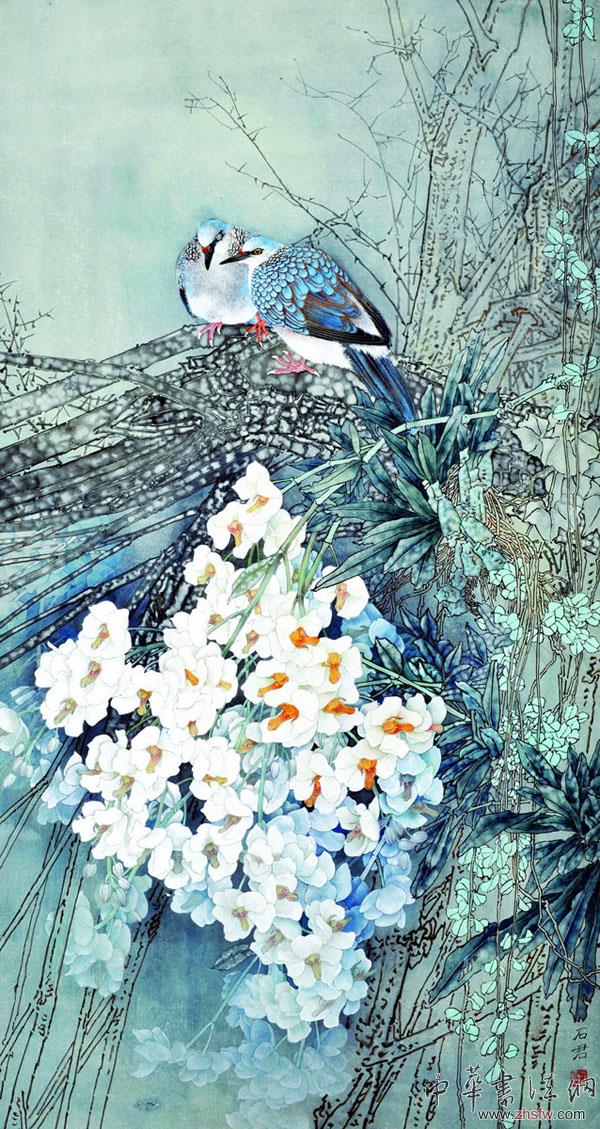 石君,1958年生,湖南益陽人。湖南長沙理工大學(xué)設(shè)計學(xué)院畢業(yè),中國藝術(shù)研究院研究生院訪問學(xué)者。現(xiàn)為中國美術(shù)家協(xié)會會員,中國人民大學(xué)林凡工作室特聘教授,中國現(xiàn)代工筆畫學(xué)院特聘教授,湖南長沙理工大學(xué)客座教授,湖南省工筆畫學(xué)會副會長,湖南省沅江市政協(xié)常委。作品曾多次參加全國美展,2008年作品榮獲第七屆全國工筆畫大展一等獎,2009年作品《和諧家園》榮獲第十一屆全國美展銀獎,2012年作品《十五的月亮》榮獲紀(jì)念建軍85周年暨十二屆全軍美展優(yōu)秀獎。在物欲橫流、人心浮躁的當(dāng)代,石君的花鳥畫像一陣清風(fēng)吹來,讓人心曠神怡。從他的作品中,我們可以看出他對傳統(tǒng)文化精神的守望。他筆下的花草奔放而又雅致,昆蟲小巧而又生動,引發(fā)人們對大自然的向往和依戀??梢哉f,他用筆墨構(gòu)筑了一個和諧的精神家園。這個精神家園的營造,既來自他對自然景物的仔細(xì)觀察和傾心體悟,也來自他對藝術(shù)語言的合理提煉和熟練運用,體現(xiàn)了畫家對寧靜、和諧境界的追求。