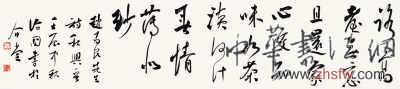 “這是形式的創(chuàng)新”,文化小院的主人趙為民教授介紹說,“這種方式不是把書法放在展覽室里簡單陳列,而是放在應(yīng)該放的地方去,讓書法回到環(huán)境中來。因?yàn)闀ū旧硎侵袊鴤鹘y(tǒng)的一種家居裝飾?!?/p>