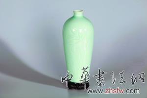 編號(hào):43 作品:《手工刻花影青凈水瓶》(影青瓷)作者:張海文 尺寸:28cm×12cm×7.5cm