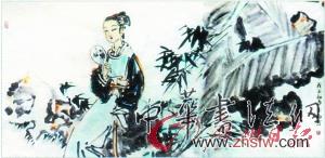 編號(hào):51 作品:《女孩》(國(guó)畫(huà)) 作者:方瑞 尺寸: 68cm×136cm