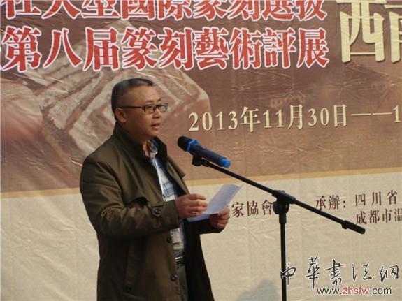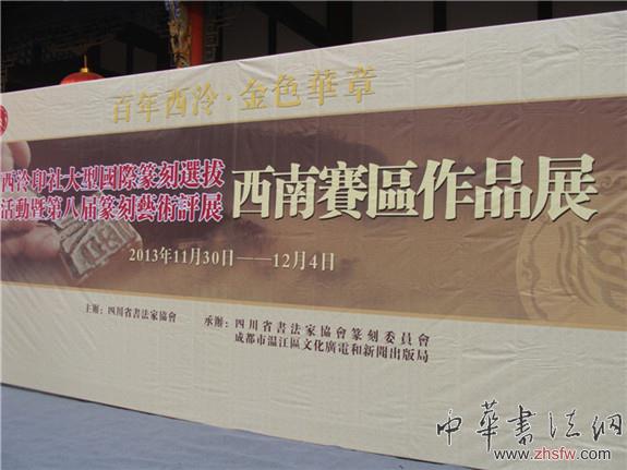 2013年11月30日上午,“百年西泠·金石華章”西泠印社大型國際篆刻選拔暨第八屆篆刻藝術(shù)評展西南賽區(qū)作品展在四川省成都市溫江區(qū)開幕。該次展覽由西泠印社與四川省書法家協(xié)會共同主辦、成都市溫江區(qū)協(xié)辦,展覽展出了來自全國14個省的51件作品(含西南賽區(qū)評委),是為西泠印社110周年華誕獻禮的盛事。